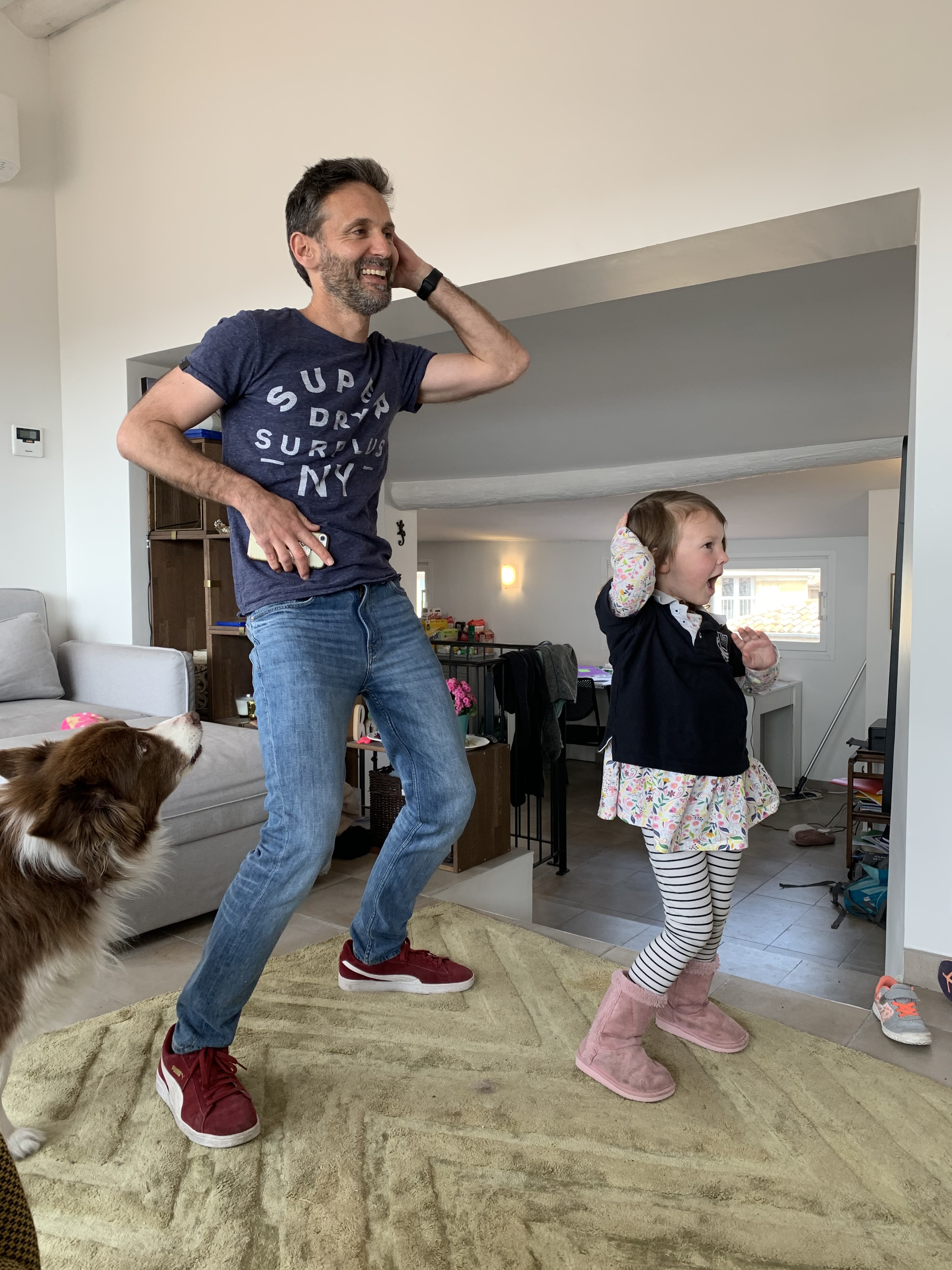 Routine is key. Everyday has a schedule, including weekends. A mix of schoolwork, exercise (indoor HIIT classes, ‘run club’ with the kids or riding to nowhere on a newly aquired indoor trainer) and free time (read: get downstairs and don’t come up for 90 minutes). Cooking. Piano. Drawing. Dancing on the new P4. Harassing the dog.